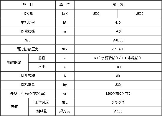 噴錨支護能有效調用巖土體自身的強度和自穩能力,是提高巖土穩定性和解決復雜巖土工程穩定問(wèn)題的經(jīng)濟有效的方法之一,噴錨支護離不開(kāi)灌漿技術(shù),設計和施工對錨固灌注漿的要求越來(lái)越高,各種施工《規范》對灌注漿壓力和水泥砂漿的水灰比也做了嚴格的規定,一般的灌注漿設備難以滿(mǎn)足。