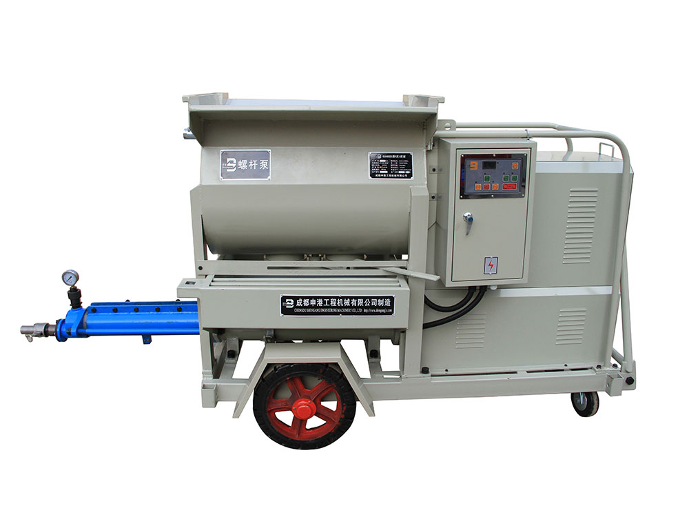 該泵結構新穎、構思獨特;避免了灌注稠漿較困難的不足,使用安全方便、效率高。本機主要由攪拌機構、增壓機構及電控系統等組成,其特點(diǎn)如下: