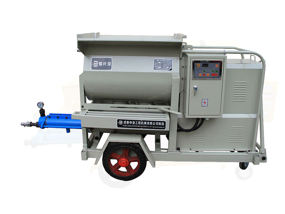 該泵結構新穎、構思獨特;避免了灌注稠漿較困難的不足,使用安全方便、效率高。本機主要由攪拌機構、增壓機構及電控系統等組成,其特點(diǎn)如下: